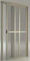 Autre concept, la singularité de cette version est que la toile ne s'enroule pas. Elle est tendue avec un jonc autour des quatre profils que constitue son encadrement. Le vantail de service est équipé d'une roulette en partie inférieur pour faciliter le déplacement latéral sur le rail posé sur l'appui fenêtre, l'autre vantail est semi fixe.