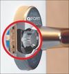 Enfin toutes nos menuiseries PVC sont équipées de série, de poignées Hoppe Sécustik (fig.6). Celles-ci consistent en un ingénieux système de sécurité, empéchant la fenêtre d'être ouverte par l'extèrieur avec une autre poignée ou tout autre outils. Offert.